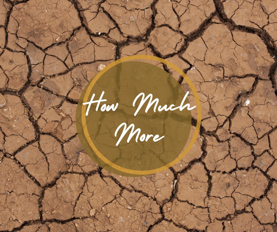 When we cry out, how much more?!! We need to hold, not desperately to our own limited and measured resources, but to hold tightly to the Lord’s resources. We need to remind ourselves and remind each other, that God is able to do immeasurably more. We need to declare the Lord’s abundance. We need to flex our faith with His power at work within us. Proclaiming in praise, HOW MUCH MORE!